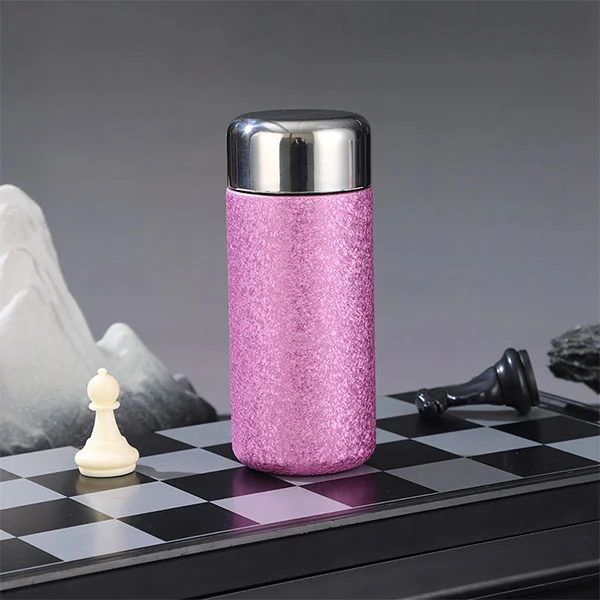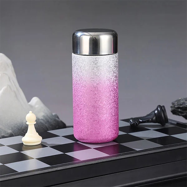 ဤအသေးစားအိတ်ဆောင်သံမဏိပုလင်း၏မျက်နှာပြင်ကိုအရည်အသွေးမြင့်မားသော texture finish ကိုဖြင့်ဖုံးအုပ်ထားပြီး၎င်းကိုနှင်းဖုံးတစ်ဖဲ့ကဲ့သို့လှပသည်။