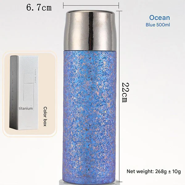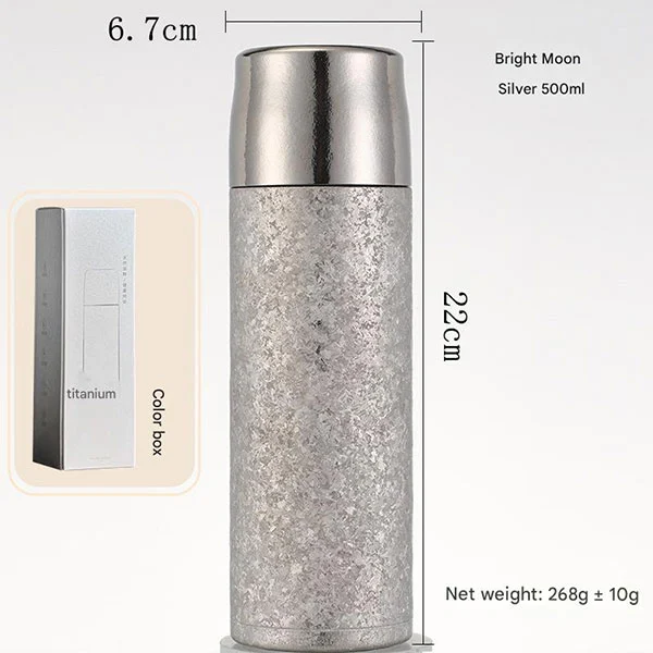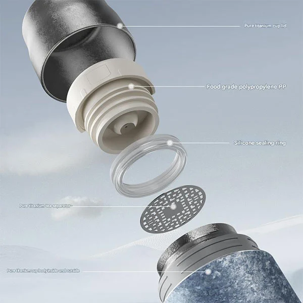 ဂန္တဝင်လက်ဖက်ရည်ဖျော်ရည်ဖျော်ရည်၊ တိုက်တေနီယမ်ပုလင်းတွင် အတွင်းအပြင်ရော အပြင်ဘက်ပါ တိုက်တေနီယမ်စစ်စစ်ဖြင့် ပြုလုပ်ထားသည့် ယိုစိမ့်မှုဒဏ်ခံနိုင်သော အဖုံးများ၊ သန့်စင်သော တိုက်တေနီယမ်ခွက်အဖုံးများ၊ နှင့် နှစ်ထပ်အလွှာပါ မီးလောင်မှုဒဏ်ကို ကာကွယ်နိုင်မည်ဖြစ်သည်။
