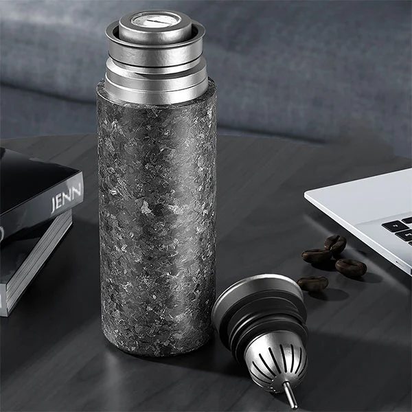 ၎င်းသည်တိုက်တေနီယမ်နှင့်လုပ်ထားသည့်သံလိုက်အဖုံးရှိပြီး Titanium ဖြင့်ပြုလုပ်ထားသောသံလိုက်အဖုံး, ၎င်းတွင်ပုံမှန် thermos ဖလား၏အဓိကလုပ်ဆောင်ချက်များ - လေဟာနယ်အပူကာကွယ်စောင့်ရှောက်ခြင်းနှင့်အအေးခံနေရသည်။ အေးအေးဆေးဆေးထိန်းသိမ်းမှုသည် 6 နာရီကြာရှည်နိုင်ပြီးအပူထိန်းသိမ်းမှုသည် 4 နာရီကြာနိုင်သည်။